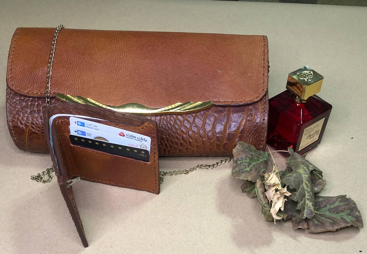کیف کلاچ زنانه همراه کیف پول چرم گاوی دست دوز۲٬۱۰۰٬۰۰۰ تومان