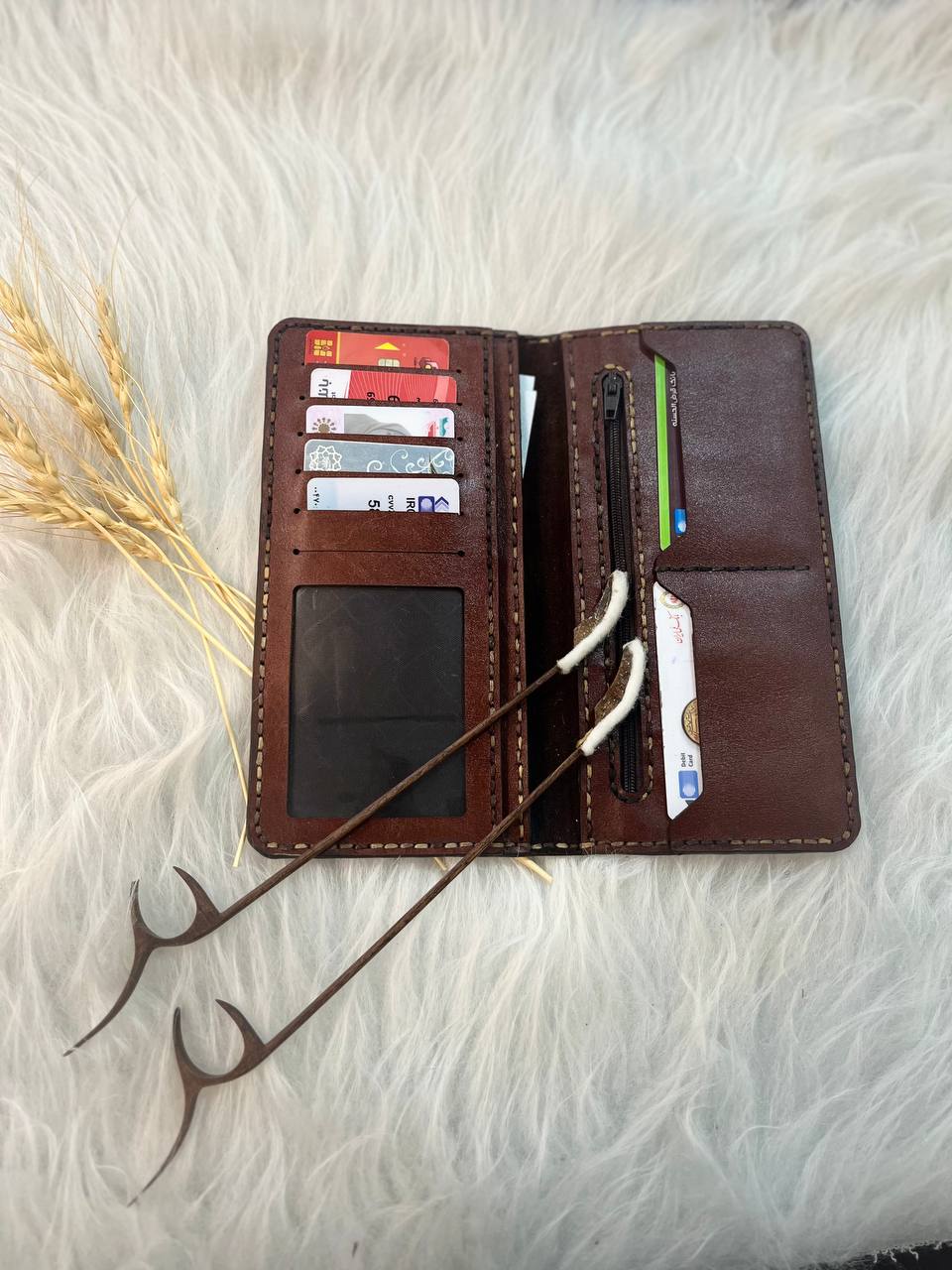 کیف پول کتی چرم گاوی دست دوزقیمت ۷۰۰